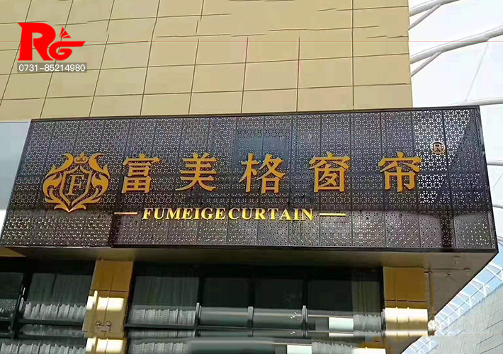 下圖:激光雕花扣板材質+LED發(fā)光字廣告招牌制作