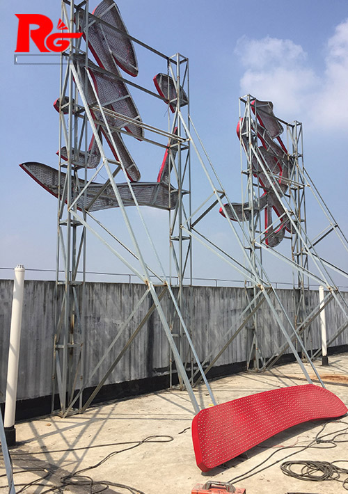 2,樓頂?shù)慕Y(jié)構(gòu),大多數(shù)樓頂結(jié)構(gòu)是沒有受力點預(yù)埋件,即沒有為長沙樓頂發(fā)光字做設(shè)計,長沙樓頂發(fā)光字鋼結(jié)構(gòu)與樓頂部無法結(jié)構(gòu)焊接(樓層頂部是不能破壞,防止漏水),在這種情況下,就要做配重,即用配重的重量來承擔(dān)長沙樓頂字所受的風(fēng)力,簡單的說就是用混凝土壓住鋼結(jié)構(gòu)的受力點。